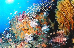 2005年5月20日環境省は世界的に重要な湿地などを保全するラムサール条約の登録候補地20カ所を発表しました。その一つに、串本海中公園を含む串本沿岸海域が入ることが決まりました。ラムサール条約とは、1971年に水鳥の生息地として国際的に重要な湿地を保全するため採択されたもので、現在では水辺の生態系の保全という観点から、湿原だけでなく干潟や藻場、サンゴ礁なども対象に含まれています。串本の海はサンゴ礁の海ではありませんが、サンゴの多さからサンゴ礁生態系に匹敵する生態系を維持しています。2005年11月にアフリカで開かれるラムサール条約締約国会議で非サンゴ礁では世界唯一登録されました。 |